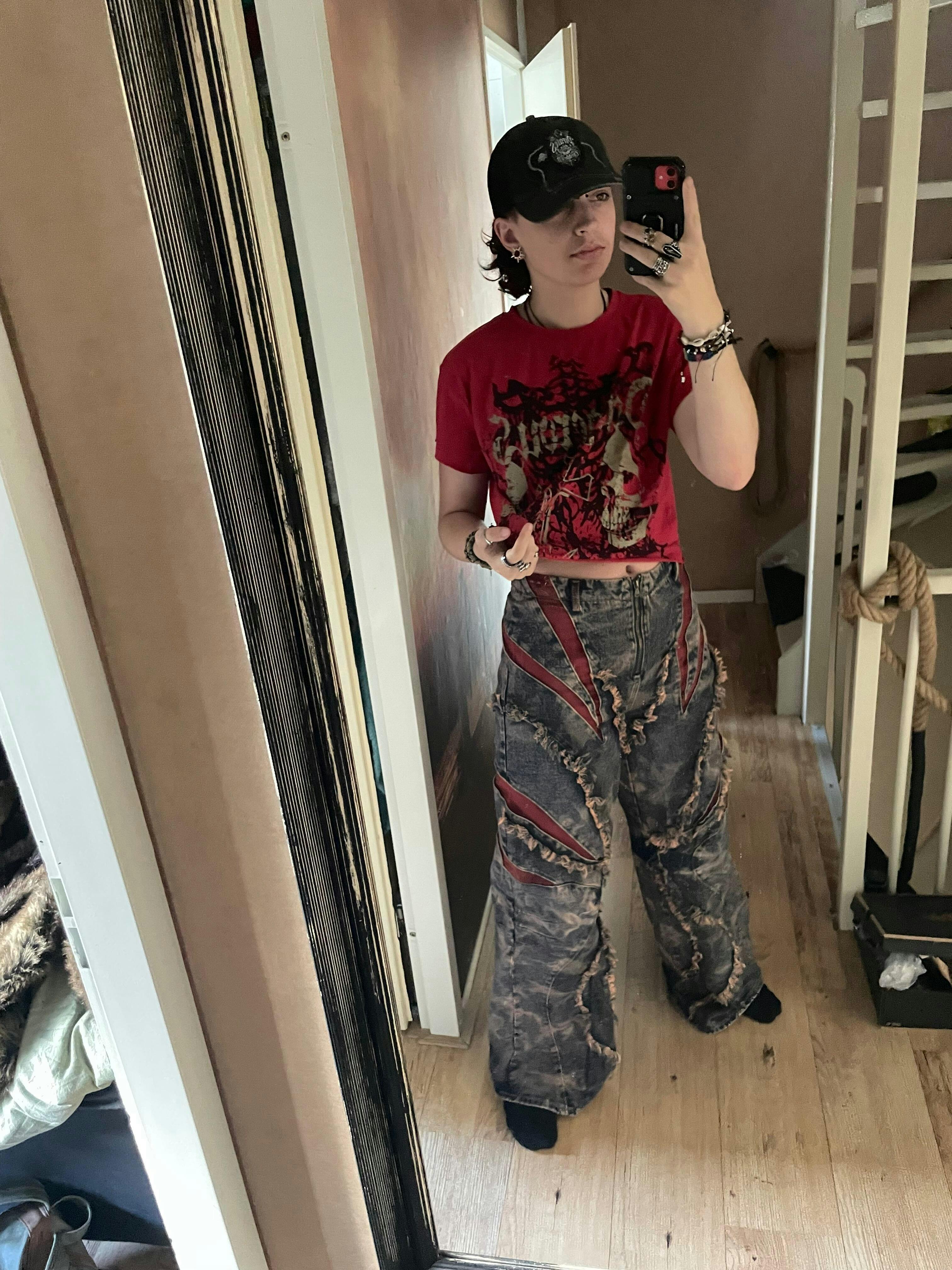 I bought the M size as a 1,77m person, expecting it to maybe be a little too short for me, but it was genuinely a perfect fit! Sad that there aren't any pockets, but thats my miss. The only thing that i don't really like about the jeans is that they are really red/orange tinted instead of the dark color they are showed as. It looks like the blue version just got put in a red wash; not the near black that i actually ordered.