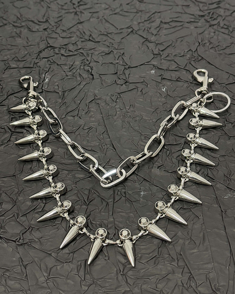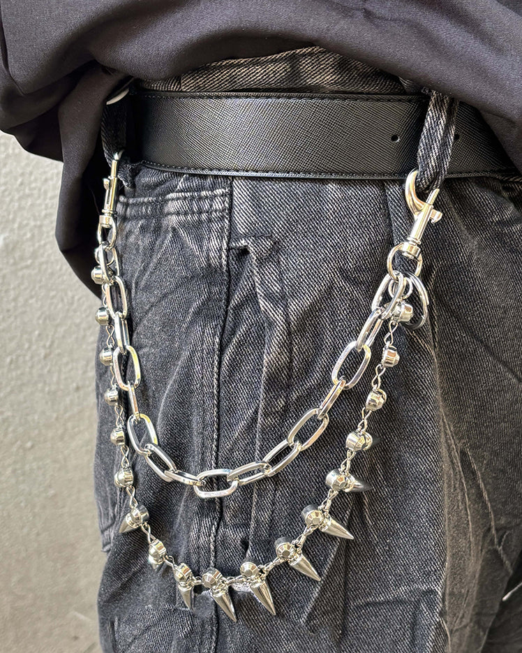 Metal bullet pendant design, detachable chain, dual-use as pants chain or necklace, polished alloy texture, heavy metal punk vibe, bold gothic aesthetic, versatile unisex street accessory