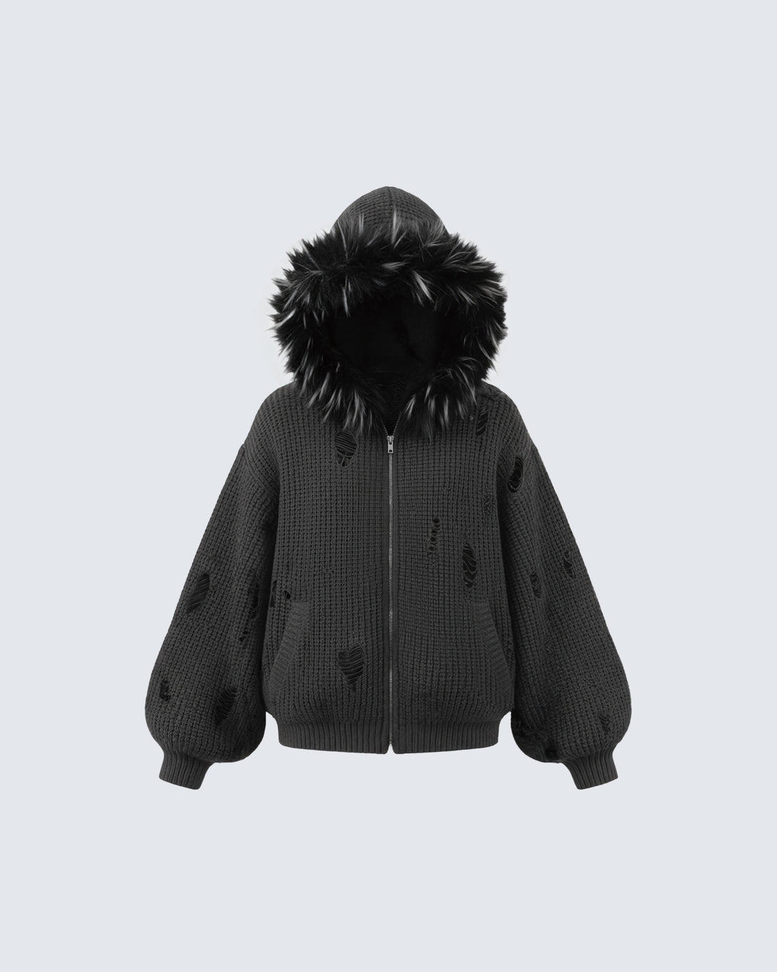 KIIKIO Destroyed Knitted Sweater Plush Coat
