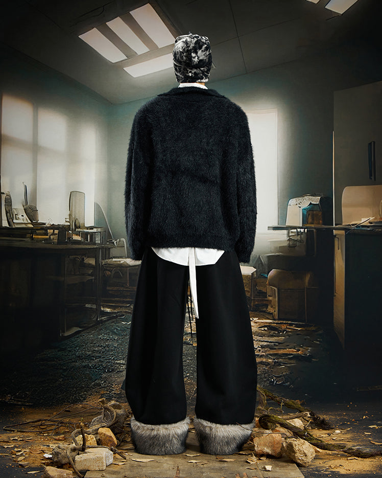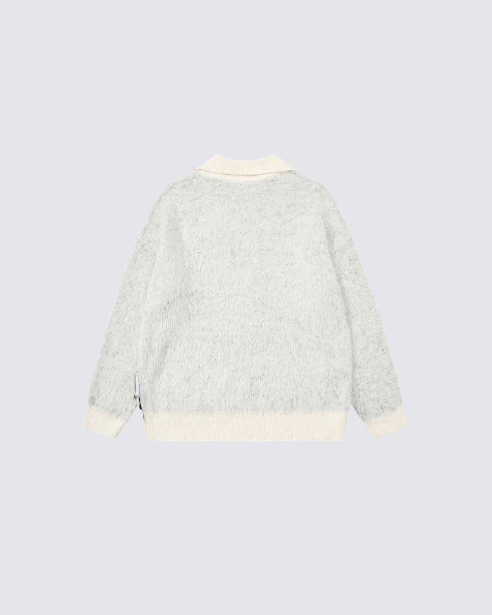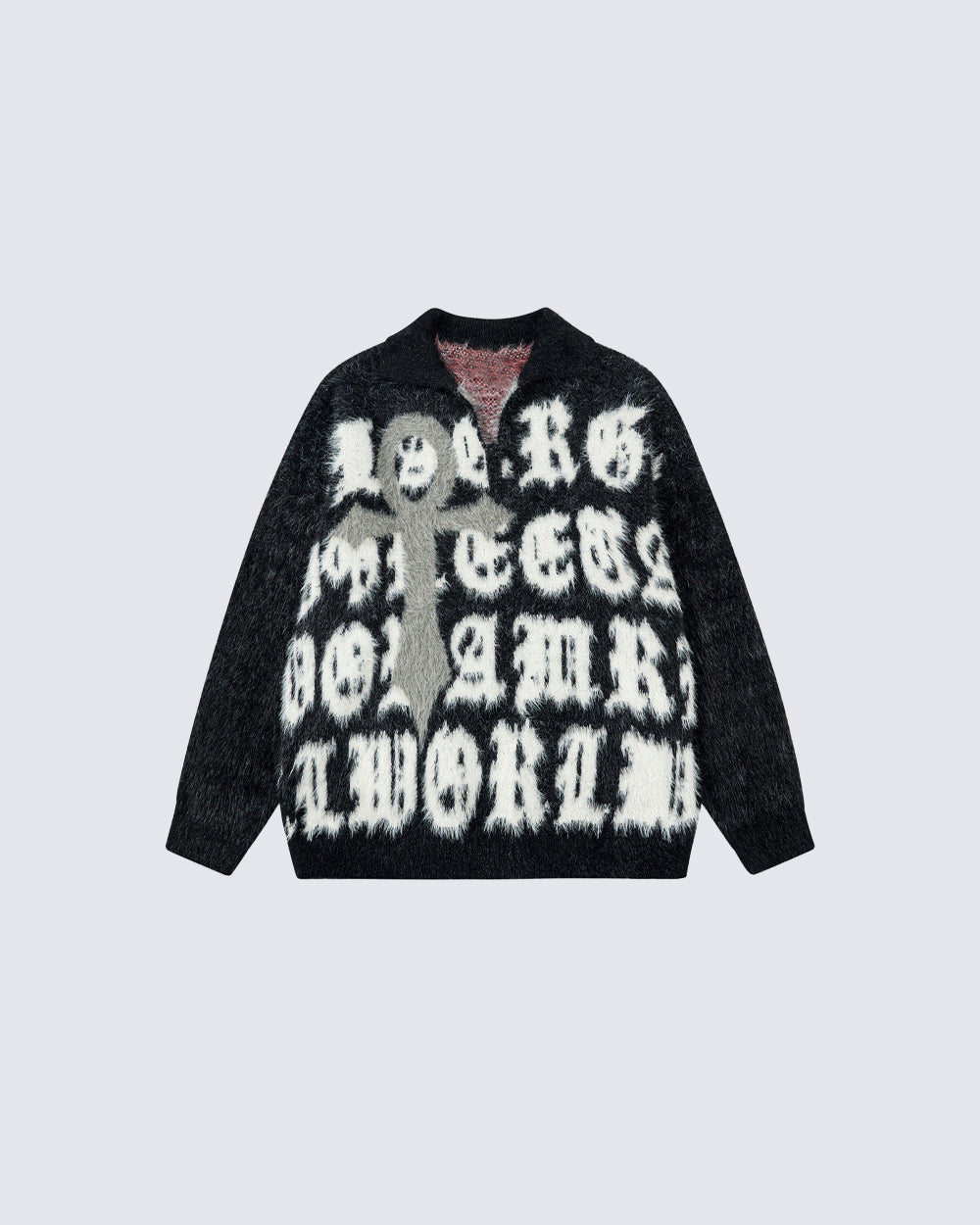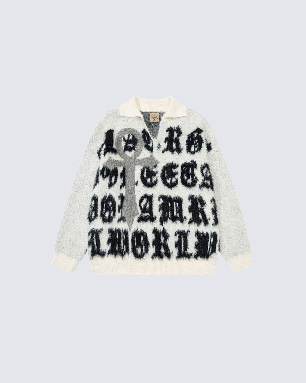 Sanskrit Gothic Letter Jacquard Lapel Knit Sweater