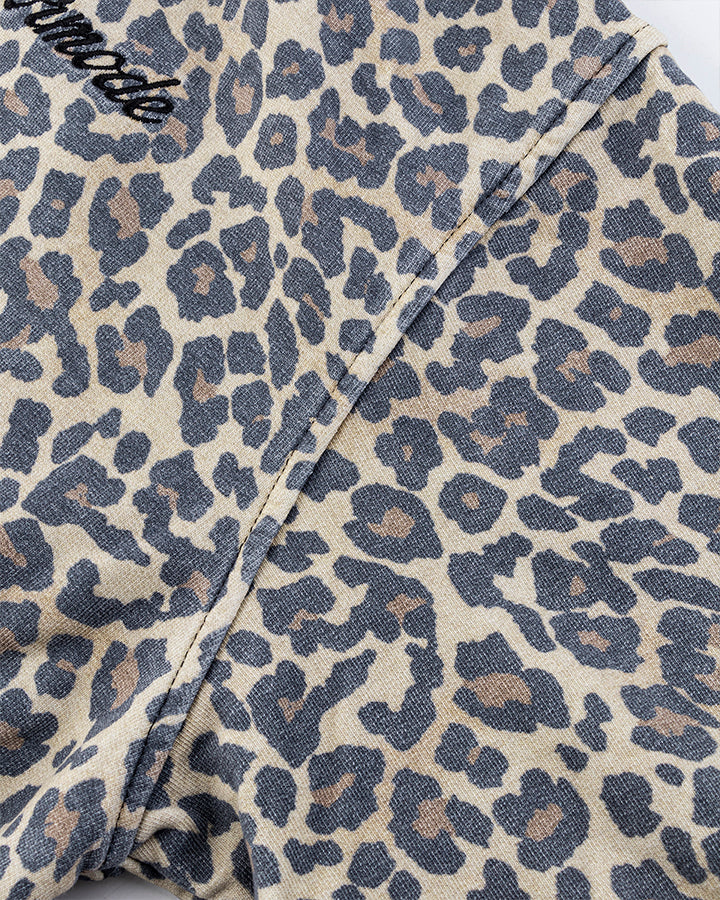 All-over leopard print, front zip closure, kangaroo pockets, hooded design, relaxed fit