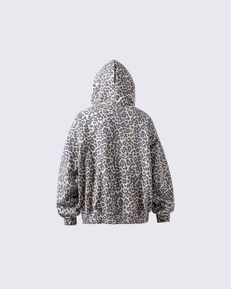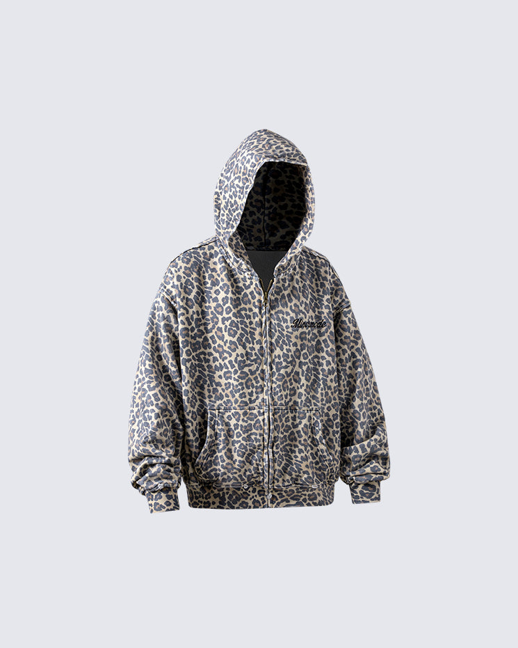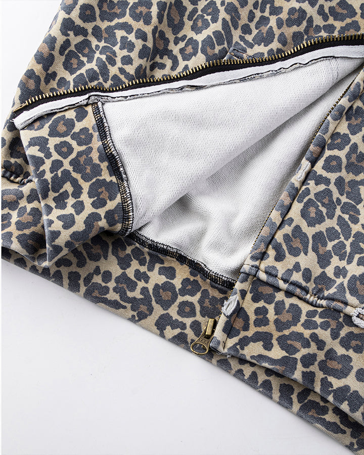 Leopard Print Zip-Up Hoodie