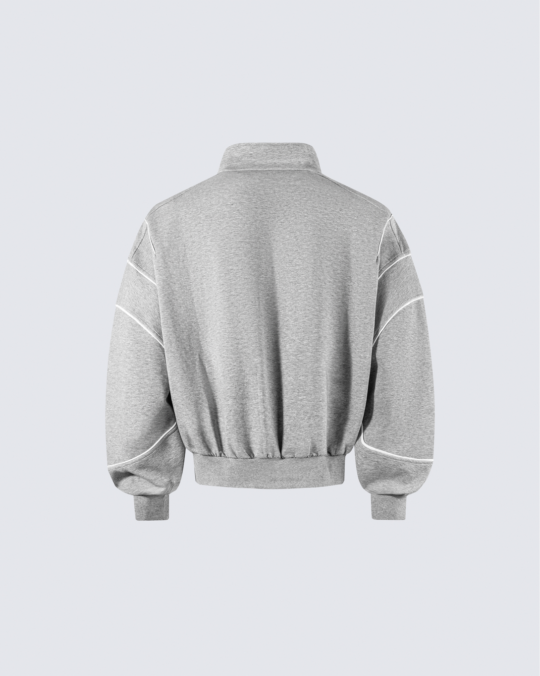 Loose-Fit Zip-Up Sweatshirt with White Piping