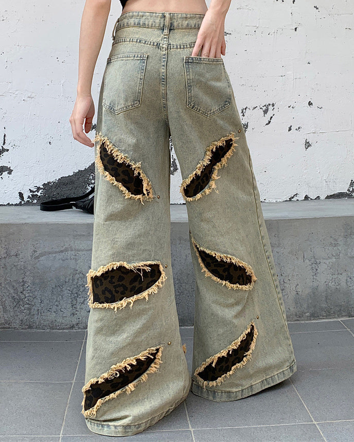 Post-Apocalyptic Printed Distressed Floor-Length Jeans