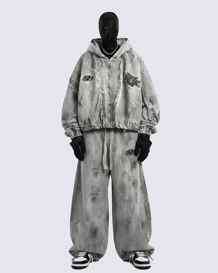 Washed Vintage Embroidered Sports Casual Tracksuit