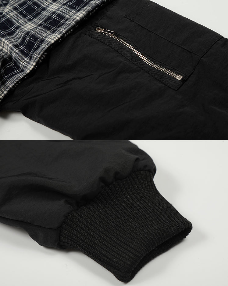 American Streetwear Patchwork Plaid Collar Jacket
