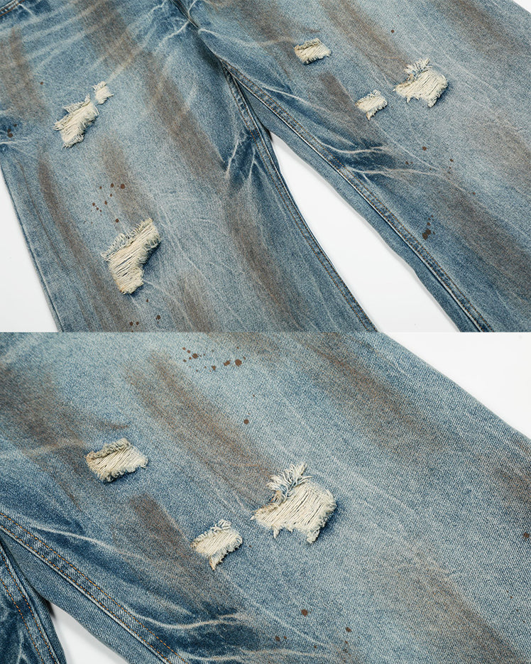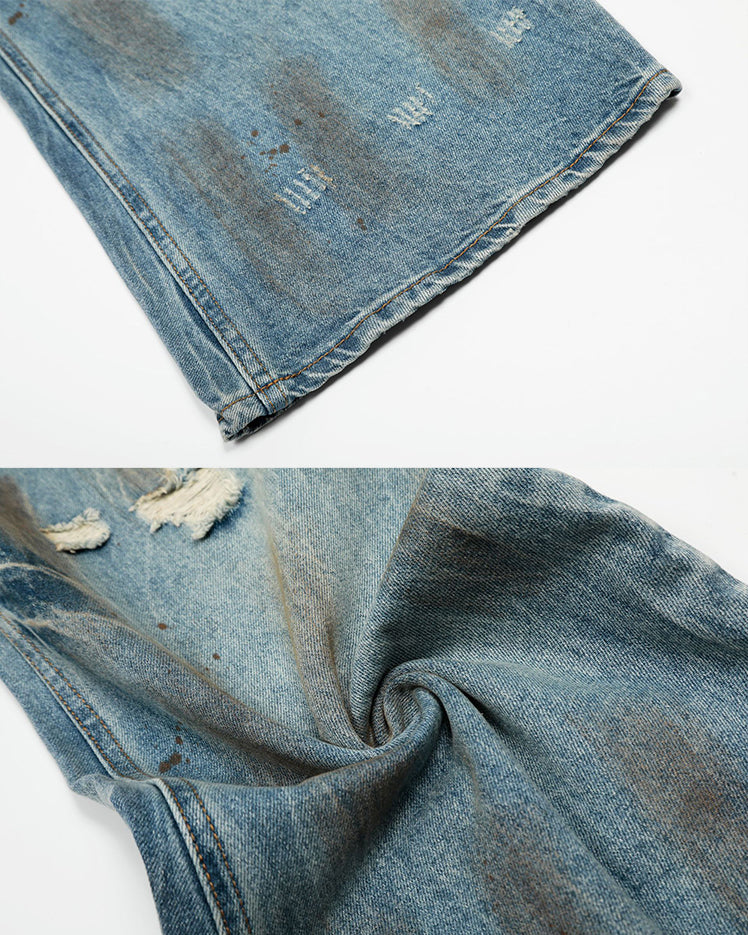 American High-Street Washed Distressed Scimitar-Cut Denim Jeans