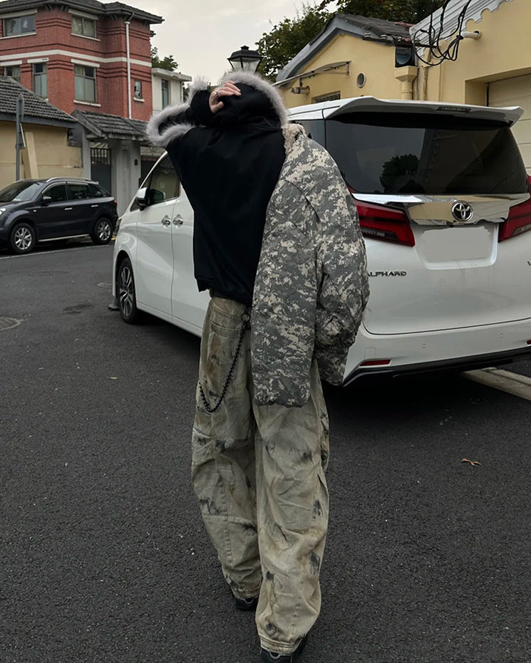 Camouflage Faux Fur Hooded Jacket