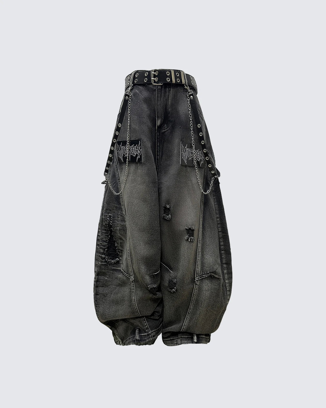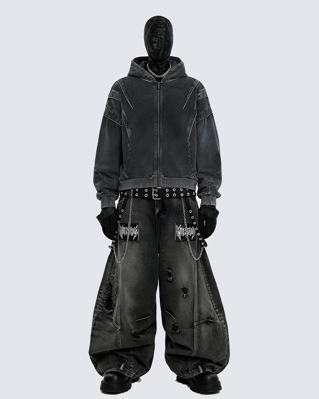 American Avant-Garde Washed Distressed Deconstructed Armor Hoodie Set