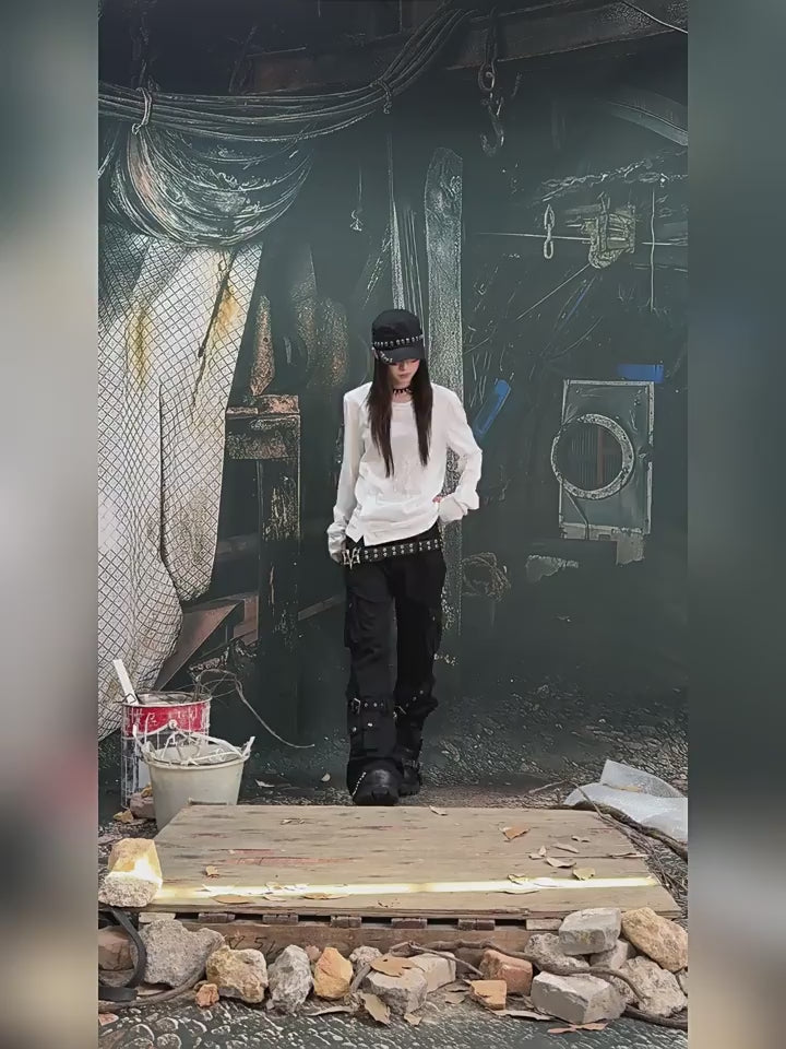 American Skeleton Texture Layered Long T-Shirt