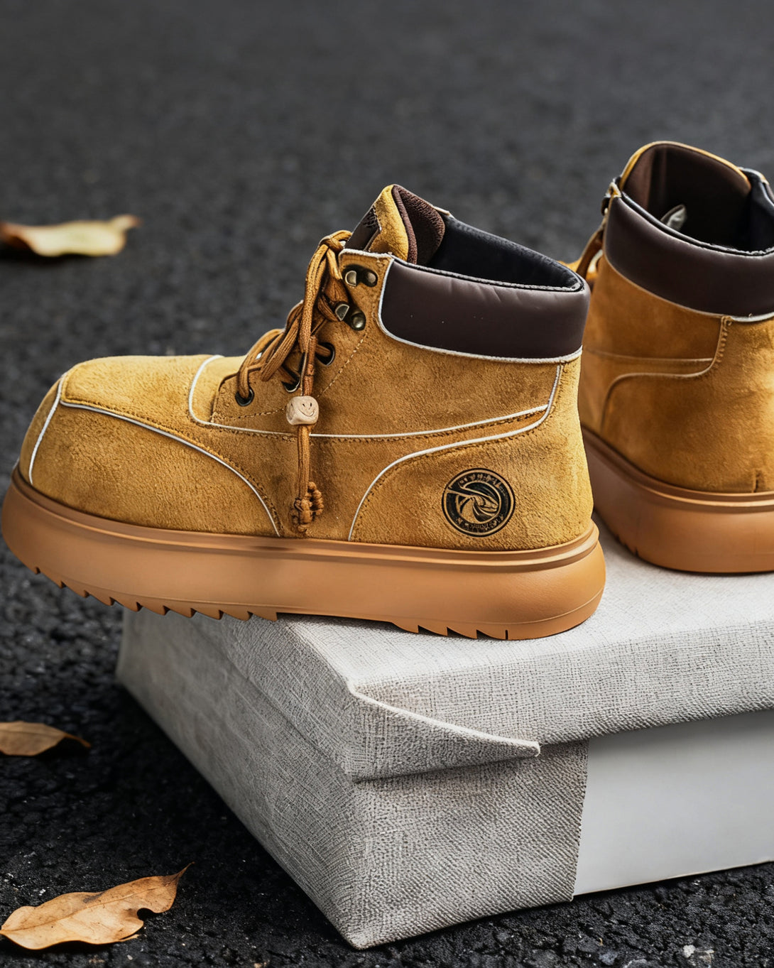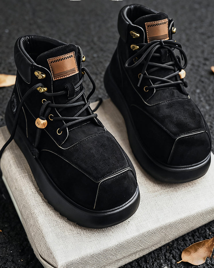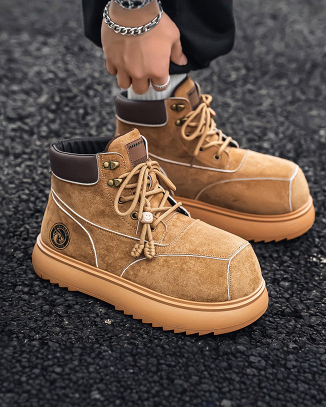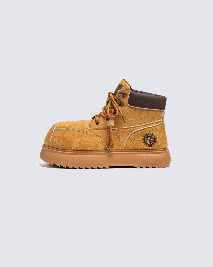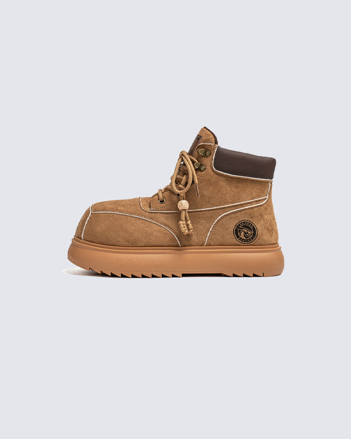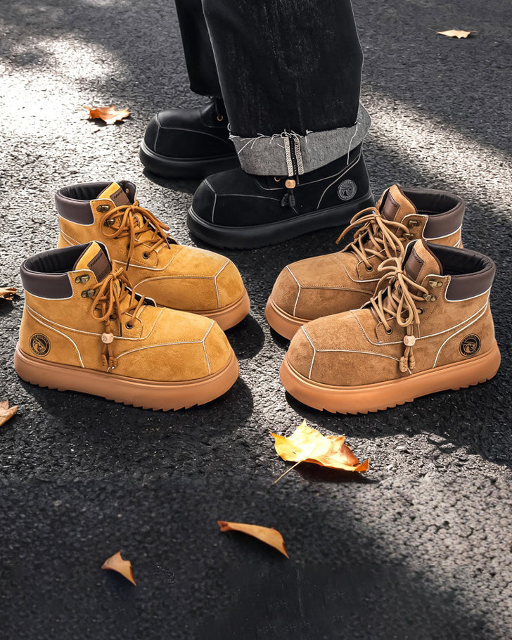 Chunky sole design, PU leather upper, lace-up closure, contrast stitching, plush “dumpling-style” silhouette, durable PVC outsole