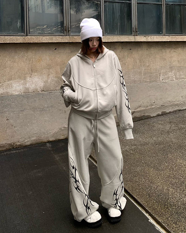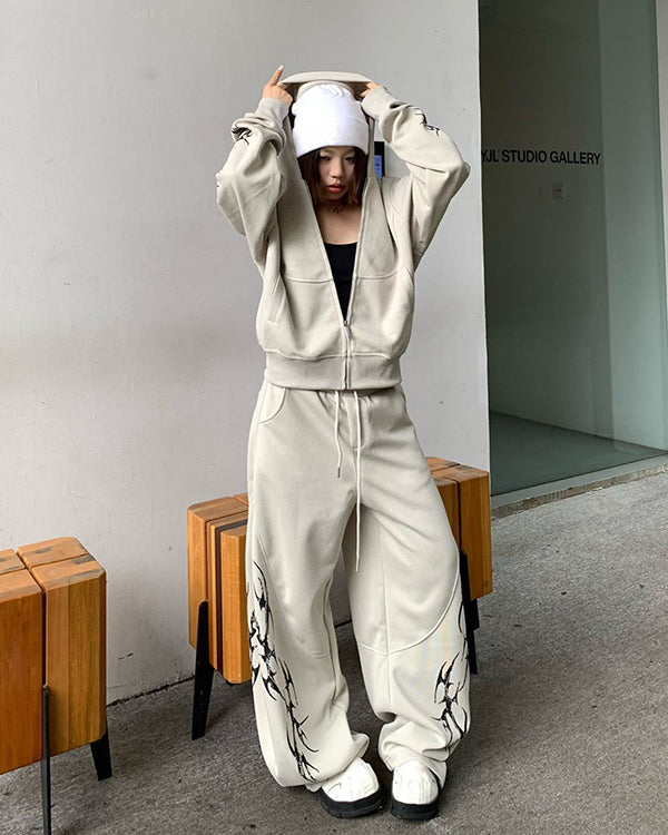Embroidered Graphic Zip-Up Hoodie