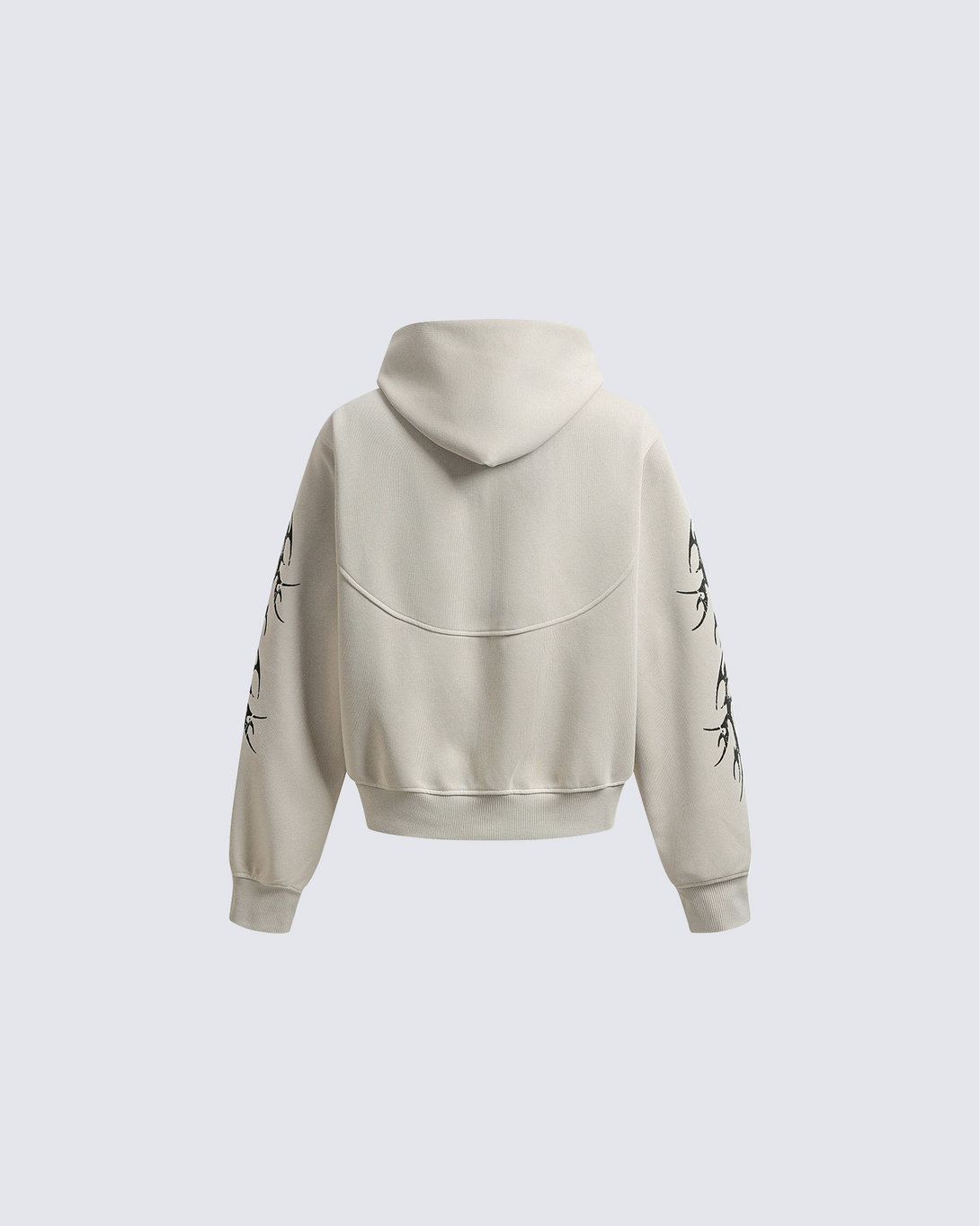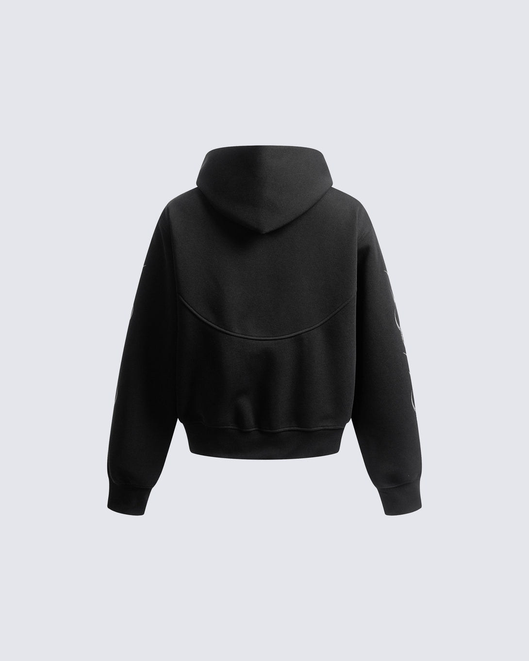 Design Elements: Bold embroidered graphic on the sleeves, zip-up front, relaxed fit, adjustable drawstring hood, soft fleece interior