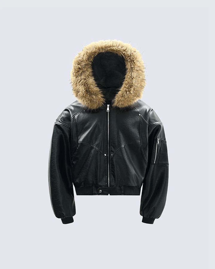 Designed for modern streetwear lovers, this jacket combines rugged durability with sleek aesthetics. Available in classic black and versatile gray, the bomber features a plush faux fur hood for maximum warmth and a standout look.