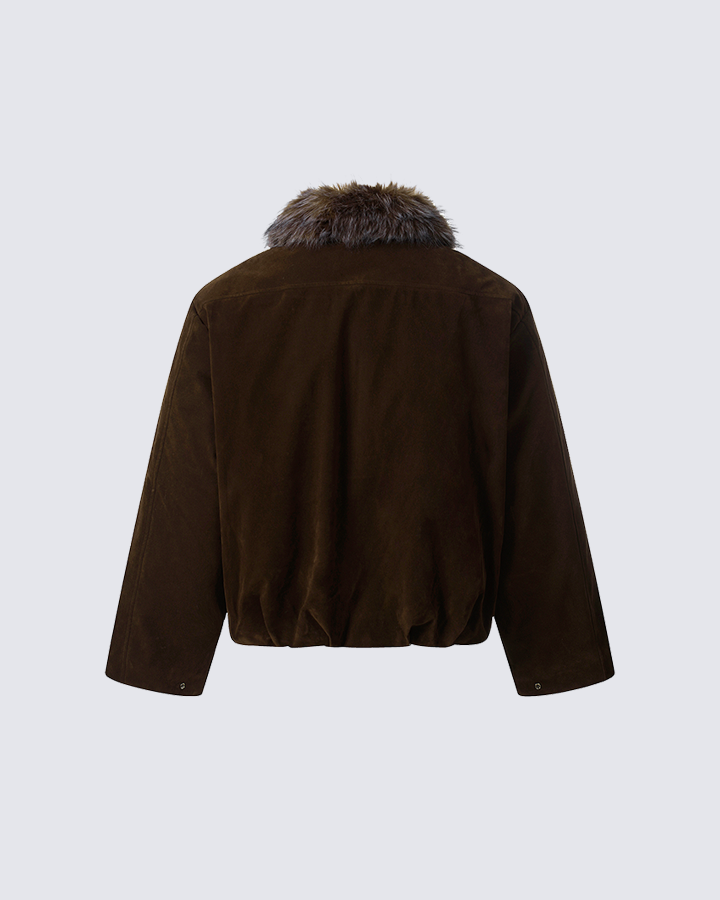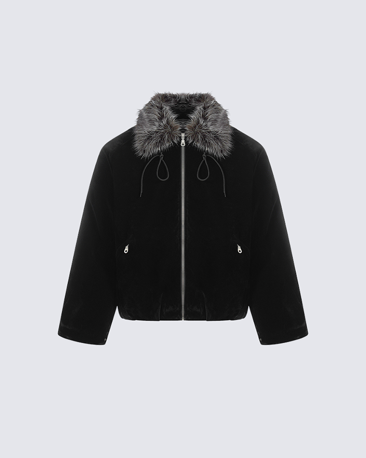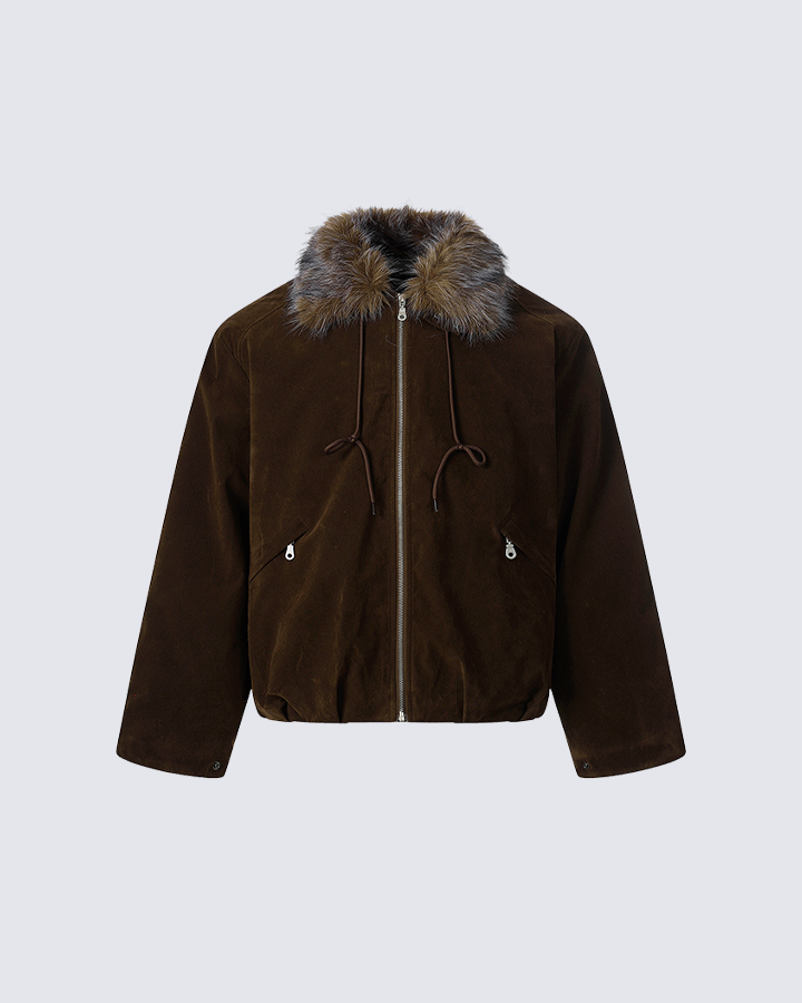 Design Elements: This jacket features a cozy faux fur trim around the collar and a zip-up closure for added warmth and comfort. The jacket is designed with adjustable drawstrings and zippered pockets for both style and practicality. Its casual yet chic design makes it perfect for layering during colder months.