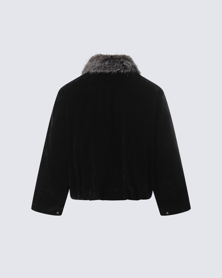 Faux Fur Trimmed Zip-Up Jacket