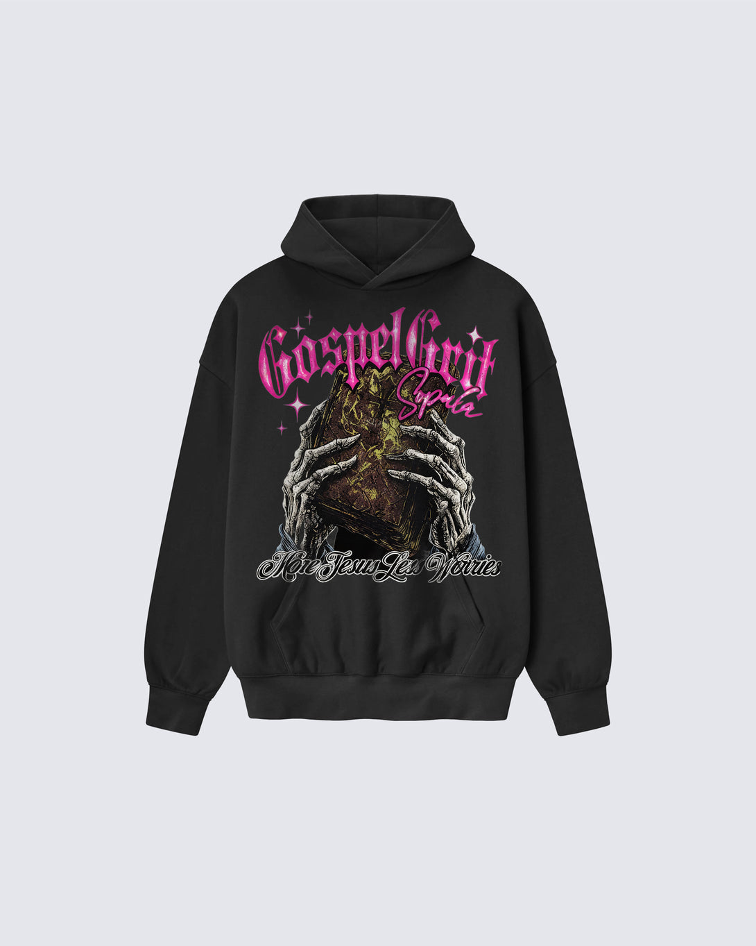 Gospel Grip Graphic Hoodie - Gothic Streetwear with Bible Design