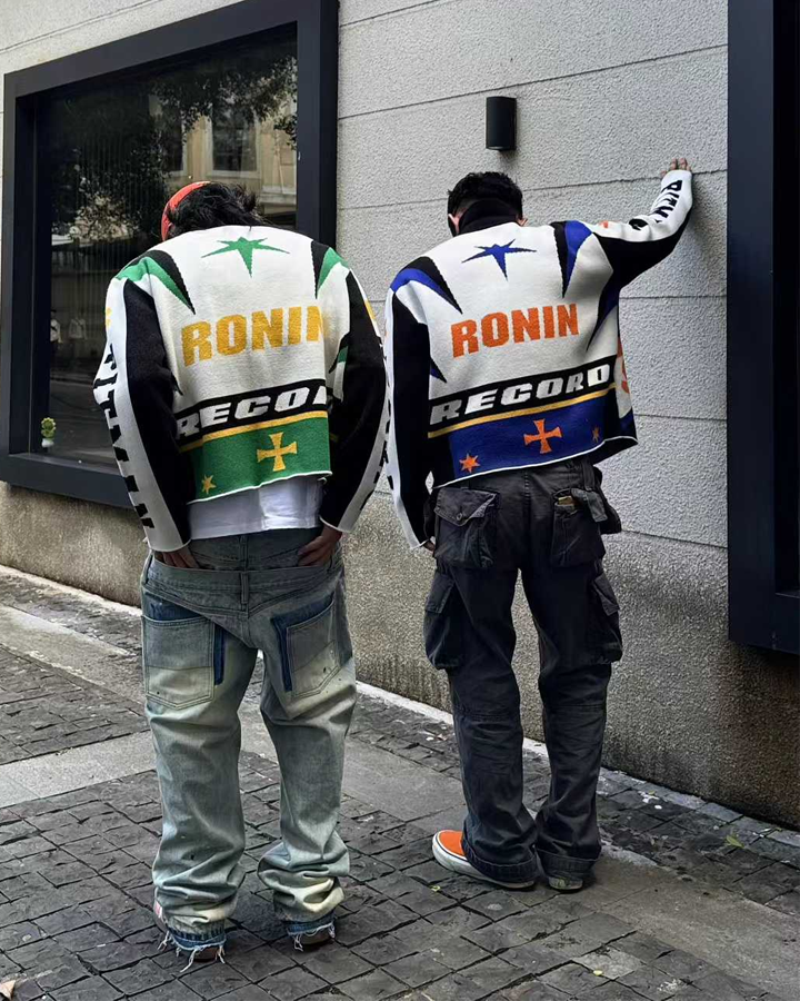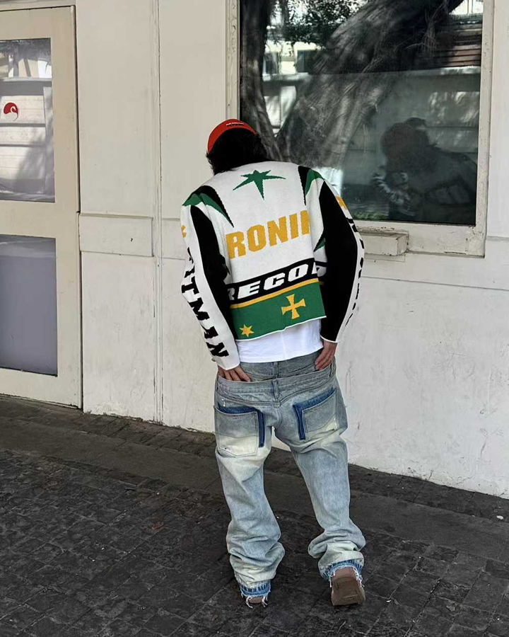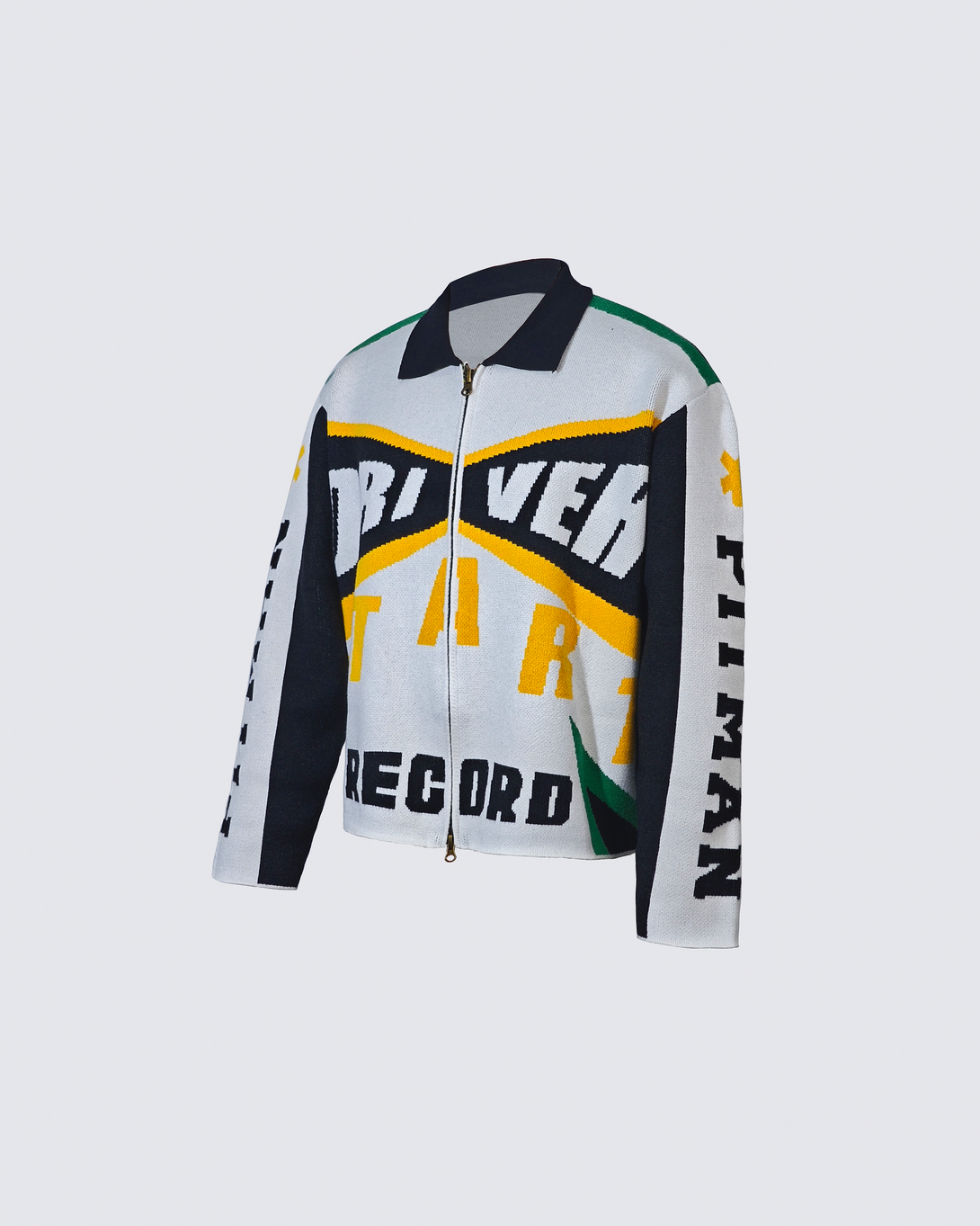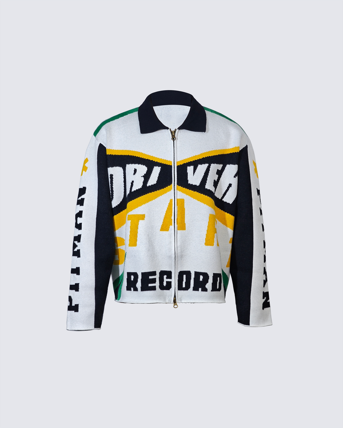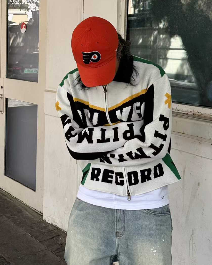 Racing-Inspired Graphic Knit Zip-Up Jacket