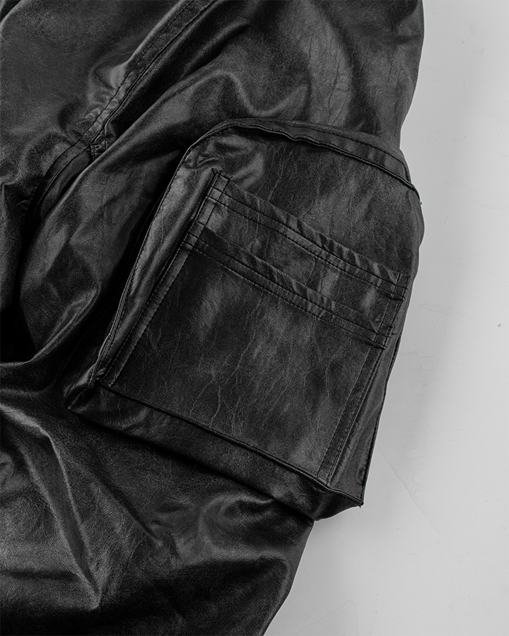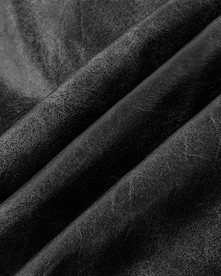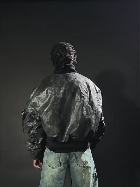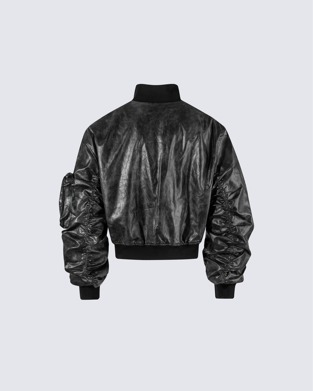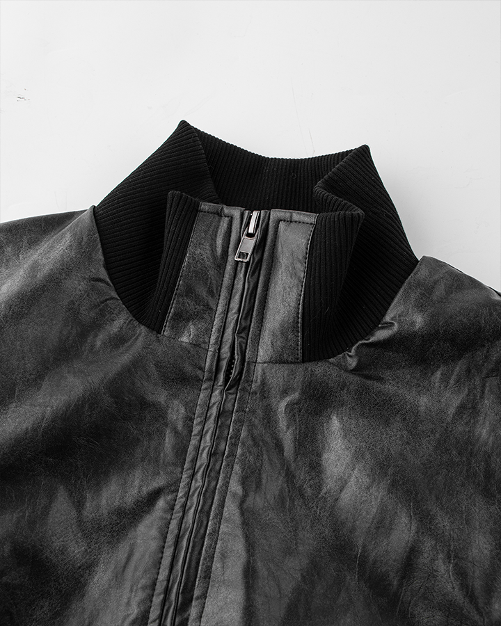 Design Elements: Vintage leather look, ruched sleeve details, ribbed collar and cuffs, front flap pockets, insulated inner padding for warmth