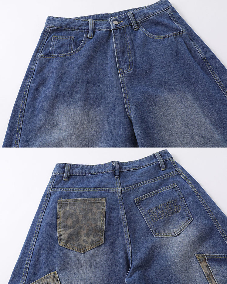 These unique oversized denim cargo pants feature a relaxed fit with large pockets for added utility and style. Distressed detailing adds a vintage look, while the cuffed hem ensures a comfortable and trendy finish.