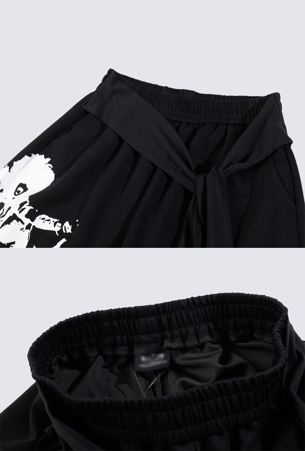 Printed design, curved seams, wide-leg cut, drawstring waist, comfortable fabric blend