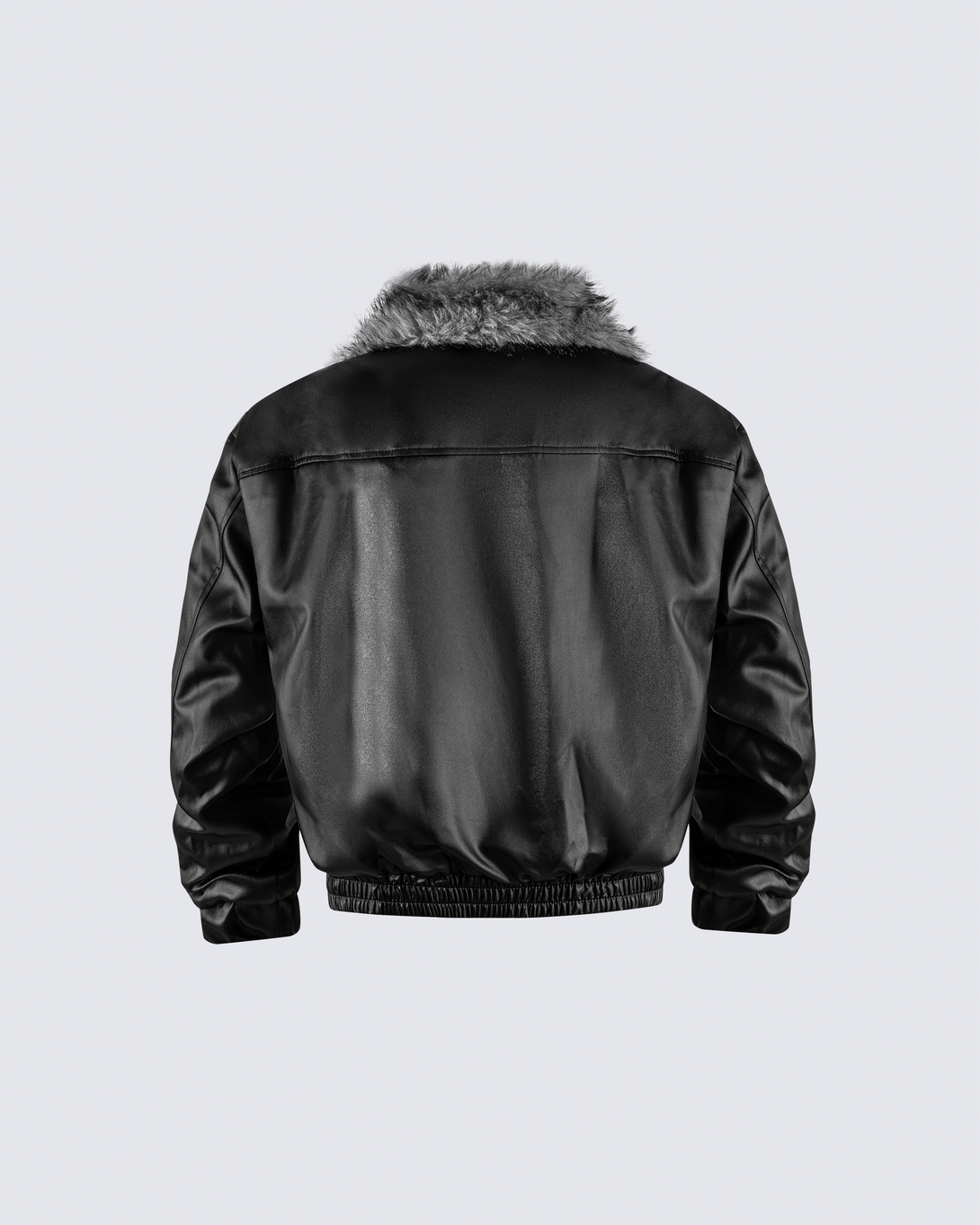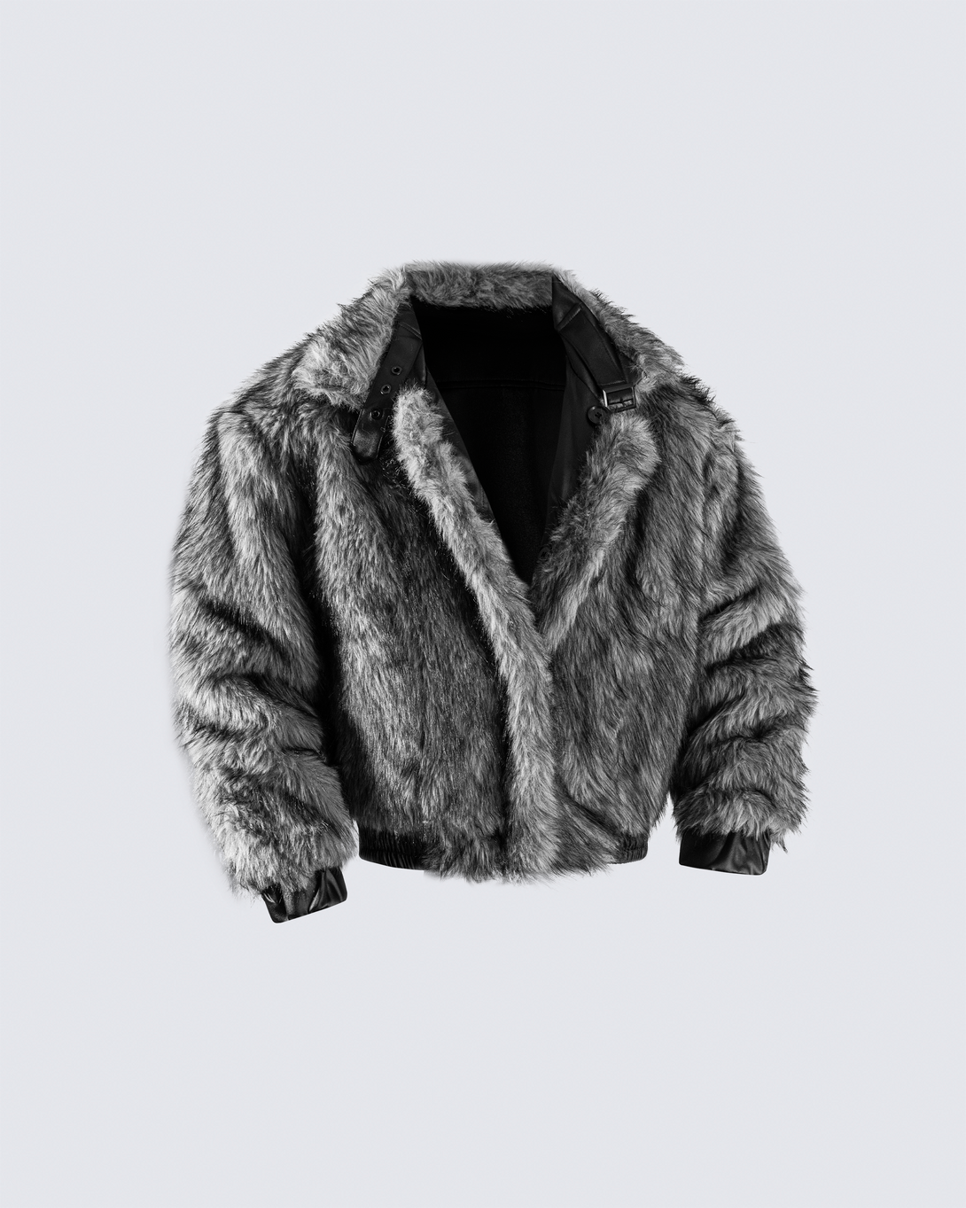 Design Elements: Reversible design, faux fur side & faux leather side, elasticated hem, adjustable cuffs