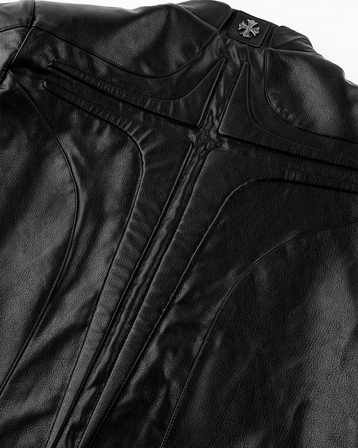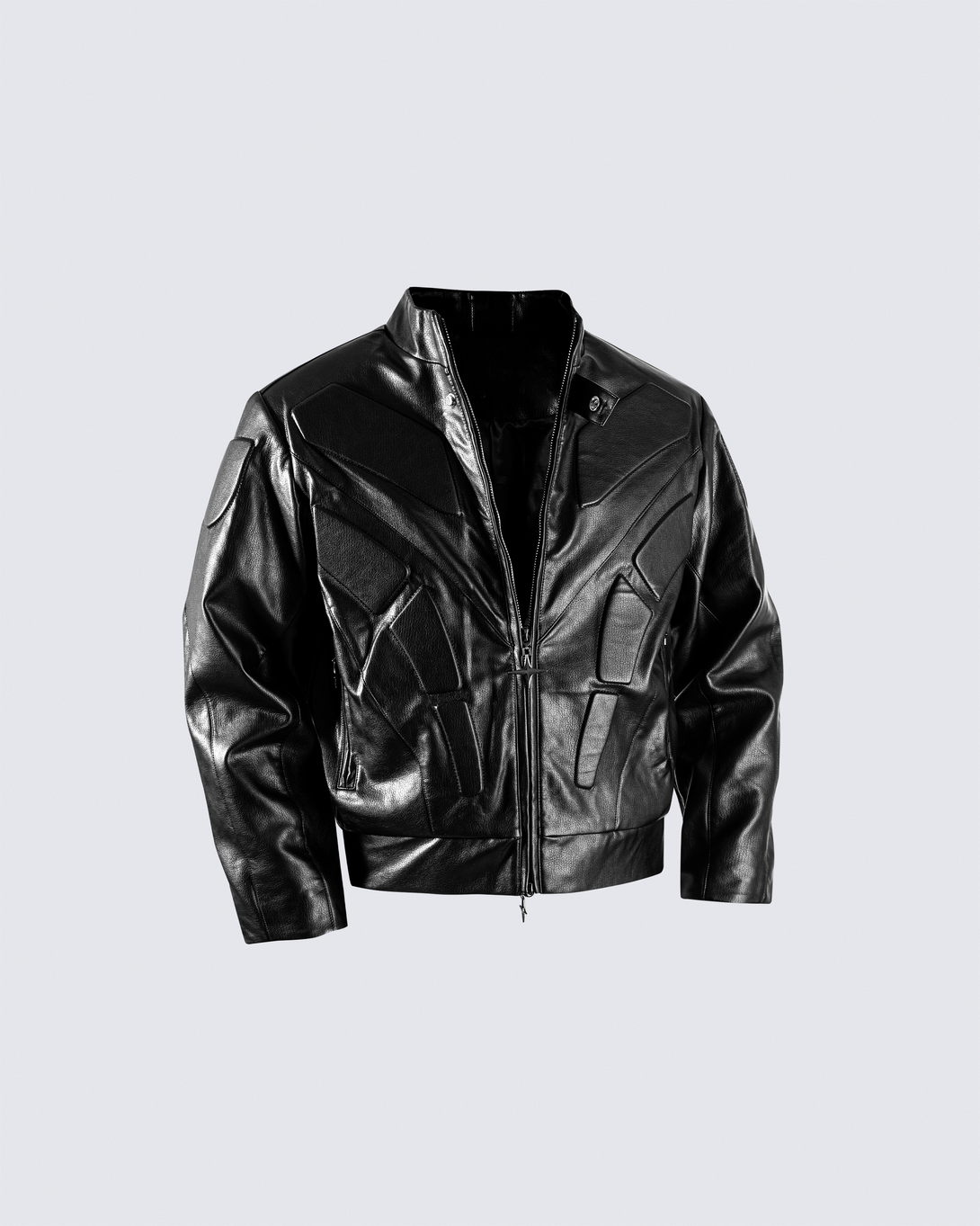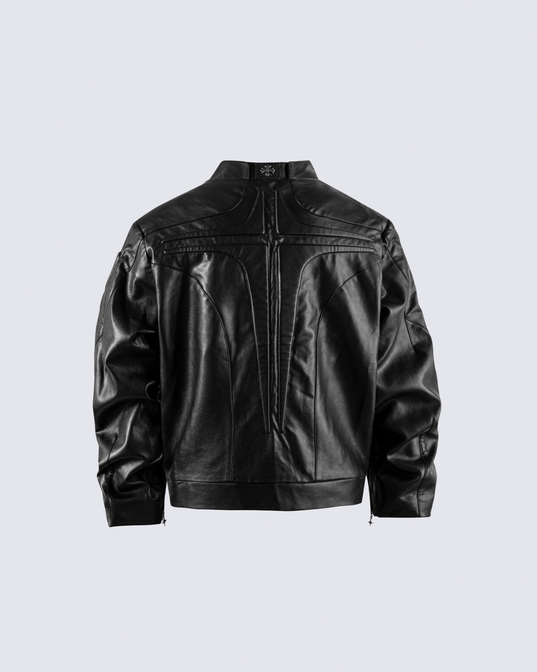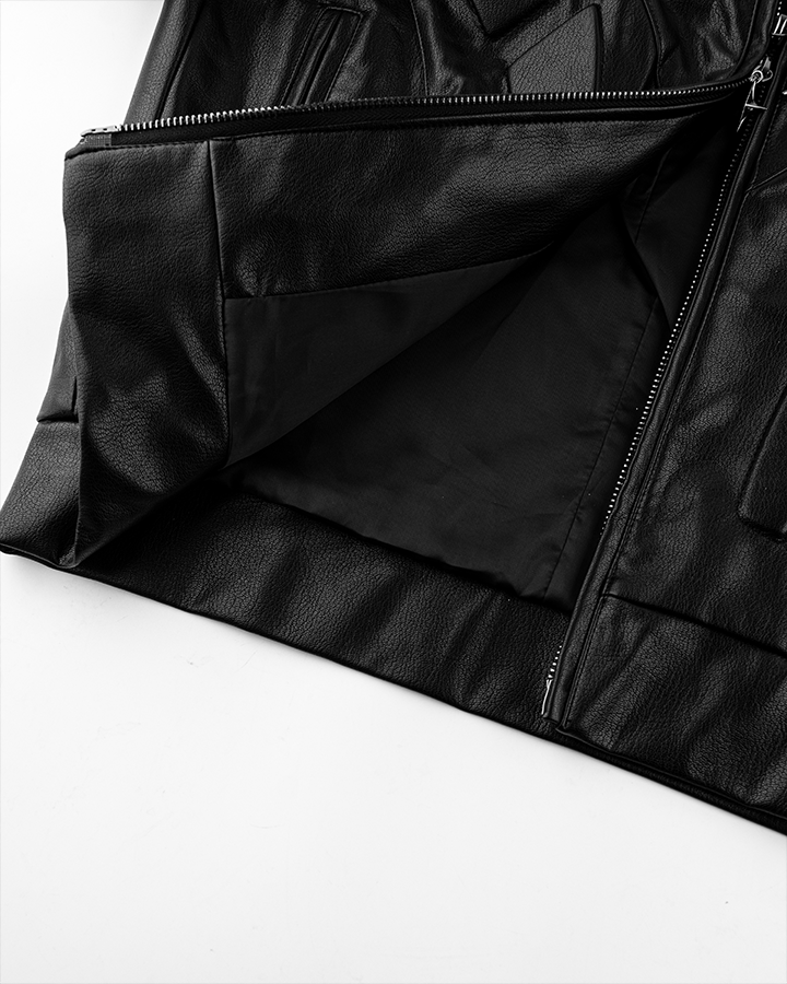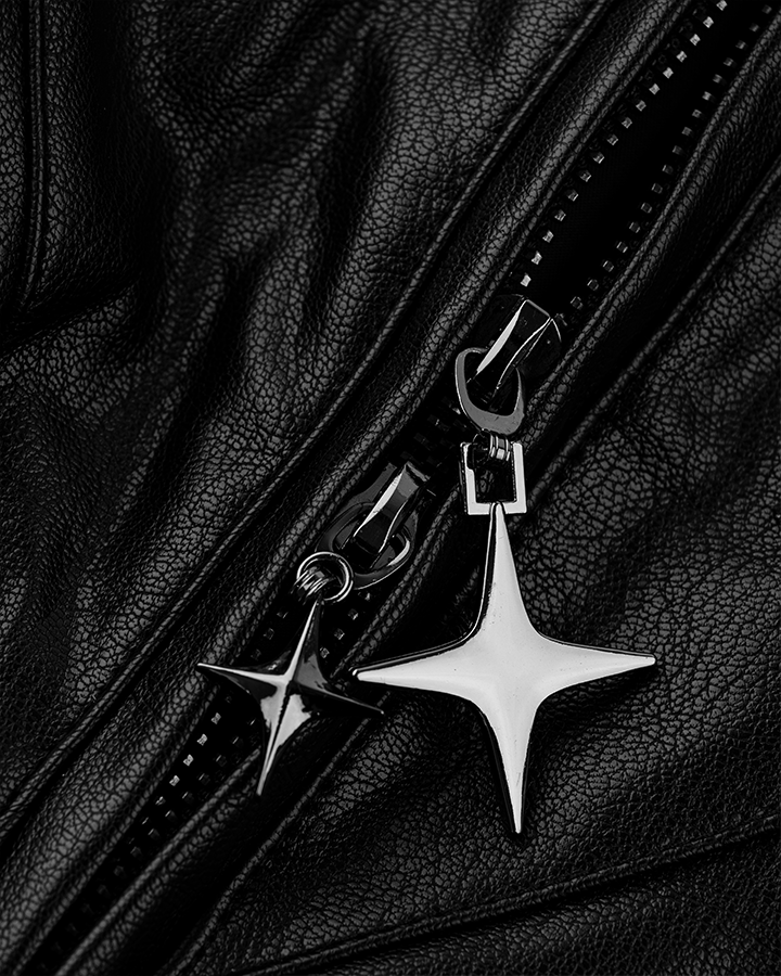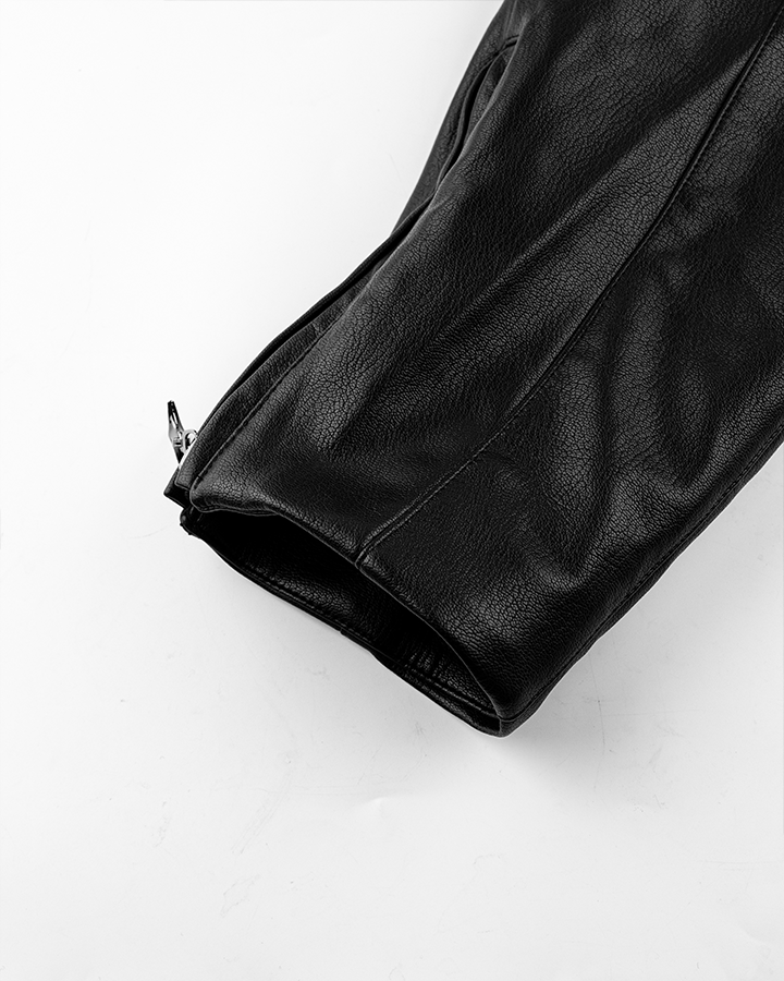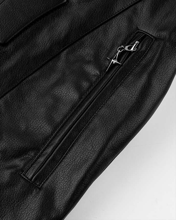 Design Elements: Structured panel design, front zip closure, stand collar snap, cuff zippers