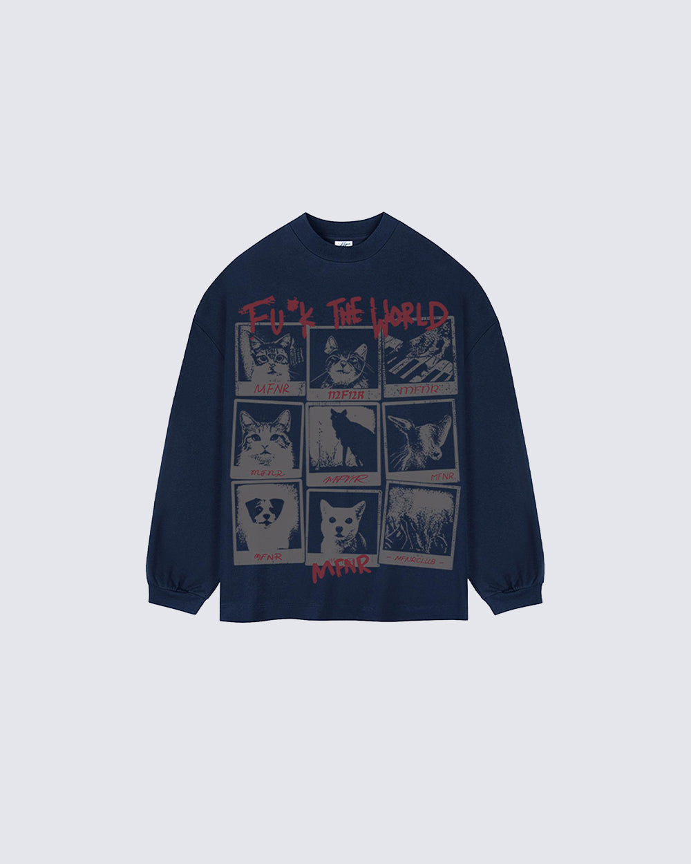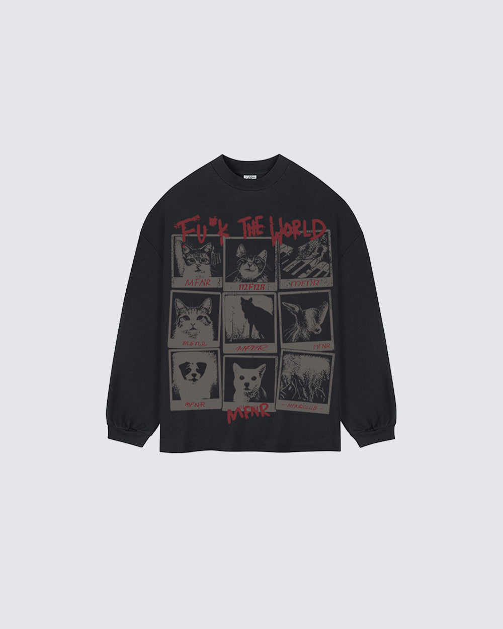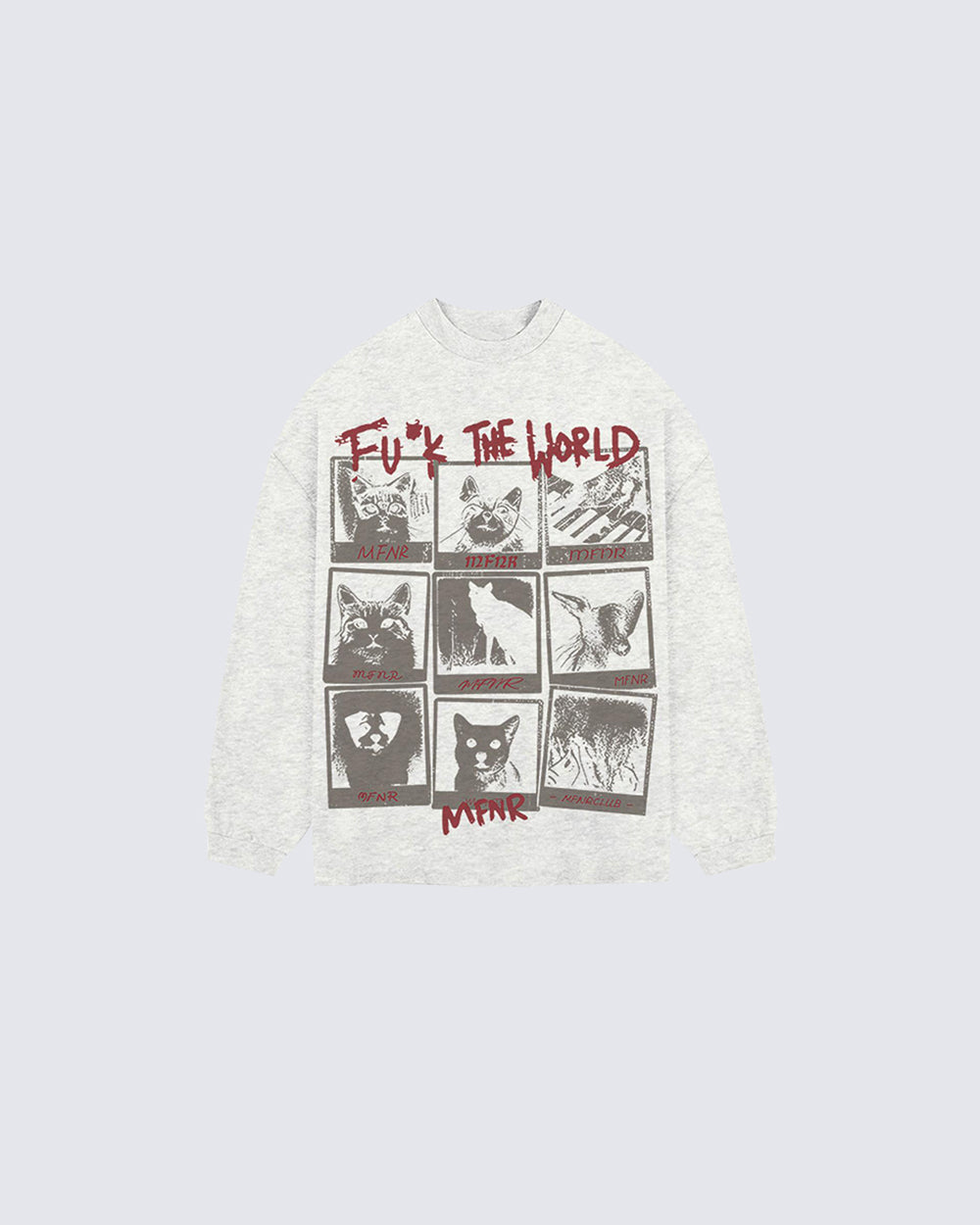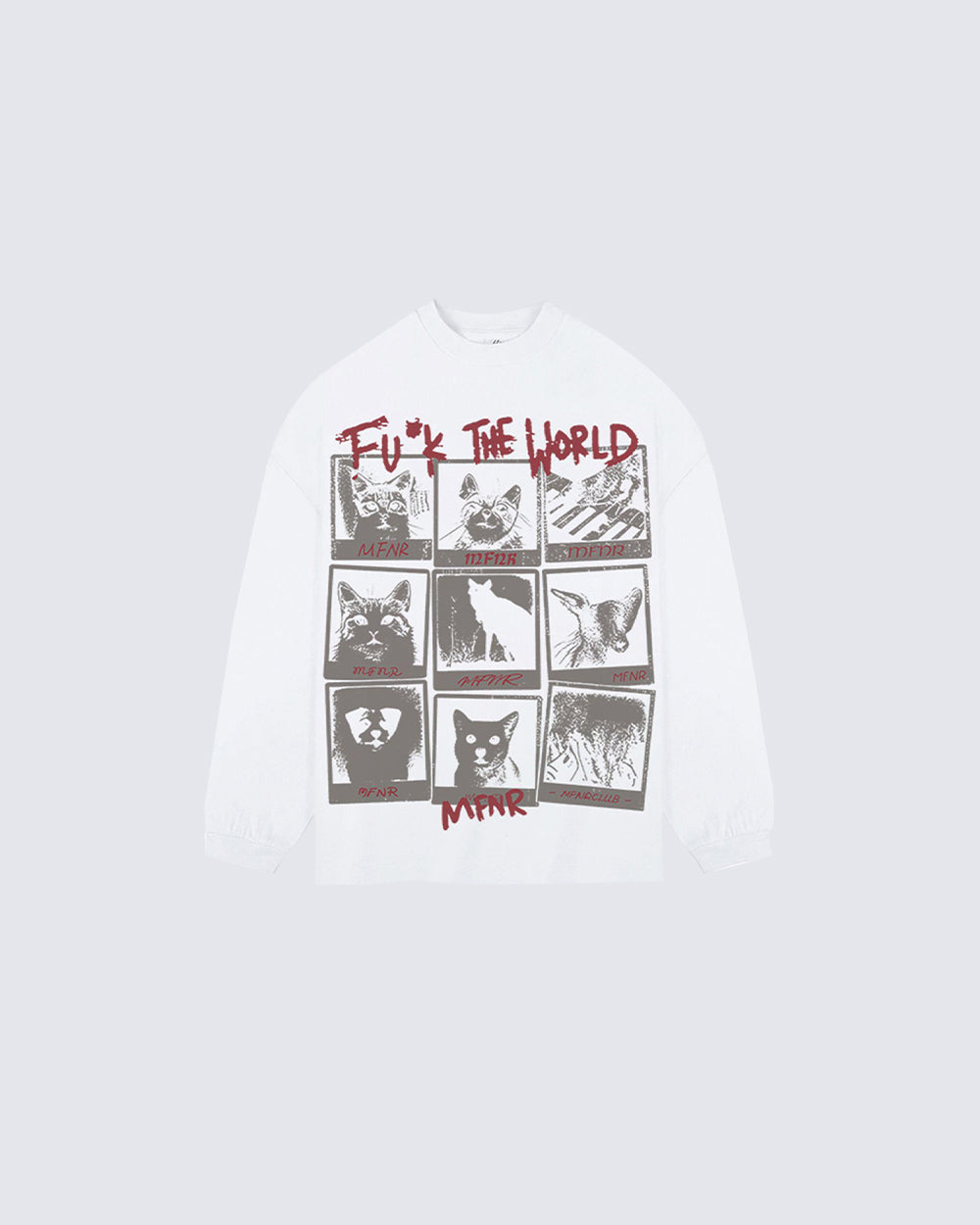 Vintage Street Cat Print Long Sleeve T-Shirt